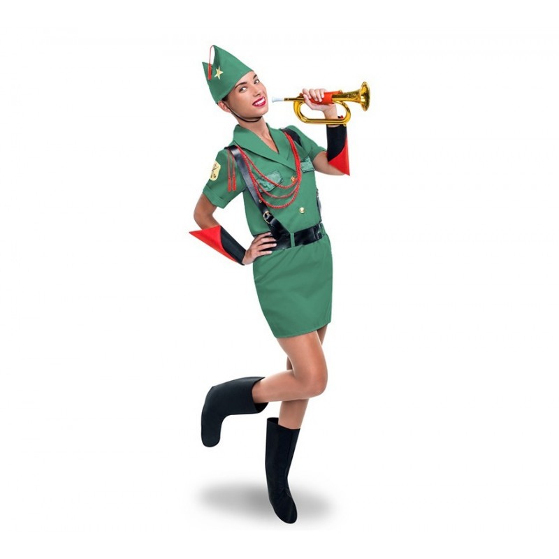 El disfraz de legionaria contiene camisa con correas, falda, cinturón, cubrebotas, gorro y manguitos. Un disfraz para mujer completo para disfrazarte.